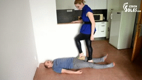Madame Marissa and this girl had a bet. She won it and she was allowed to do anything she wanted to her. She chose to trample her. She used her bare feet to crush her tits and her stomach. She even gagged her by inserting her food in the girl's mouth. She had a great time doing it and did it as cruelly as she could knowing that next time it might be her.