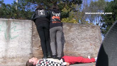 Mistress Meg and Bea were bored in the house and were looking for something interesting to do. So they searched for fun things to do online and they came across trampling fetish. They knew a loser down the road who was perfect for it and they lured him to their house. They had fun crushing him using their bare feet. They lied to him that they were doing an experiment for their coursework and he believed it.