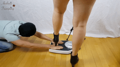 This mistress likes her instructions obeyed to the letter. Her slave thought that he could skip some of them and she was not pleased about it. She had to teach him a lesson and she did it using her boots. She crushed his hands and stomped them painfully. He could do nothing about it and placed his hands on the scale and she crushed his fingers again and again as he begged for mercy.