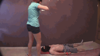 Mistress Natasha is not one to be easily scared. This loser wanted to scare her and then pretend to be brave for her. He wanted to appear as a hero but she could see what he had done and she was not happy about it. Instead of getting scared, she foiled his plans and she punished him cruelly by trampling him as hard as she could and made him cry like a girl.