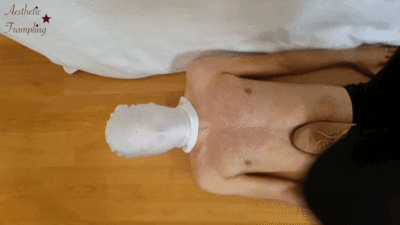 This guy bragged how he was a tough guy. This mistress laughed and it was the kind of laugh that was meant to ridicule him. He was offended by it and wanted to prove to him how tough he was. He was walking right into his trap and she gladly put him to test. She trampled him while he was wearing only his boxers. She enjoyed doing it and watched how he struggled to endure the pain till he could not endure it anymore.