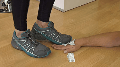 Madame Marissa felt that this slave was disgusting and he needed to make a change. The mistress used her sneakers to trample him. Her choice of where to trample was his hands and especially his fingers which she trampled slowly but painfully. This made him scream but she did not care about what he felt as she wanted him to feel a lot of pain from what she did to him.