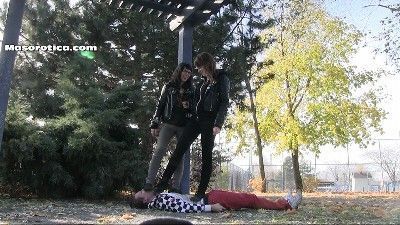 These lesbians met this bigoted guy. He talked badly about lesbianism and gay people in general. The mistresses did not mind it but when he got personal with them, they could not take it anymore and they had to punish him. The mistresses threw him on the floor and they trampled him. They did so with their shoes and they crushed his entire body as punishment for what he had done.